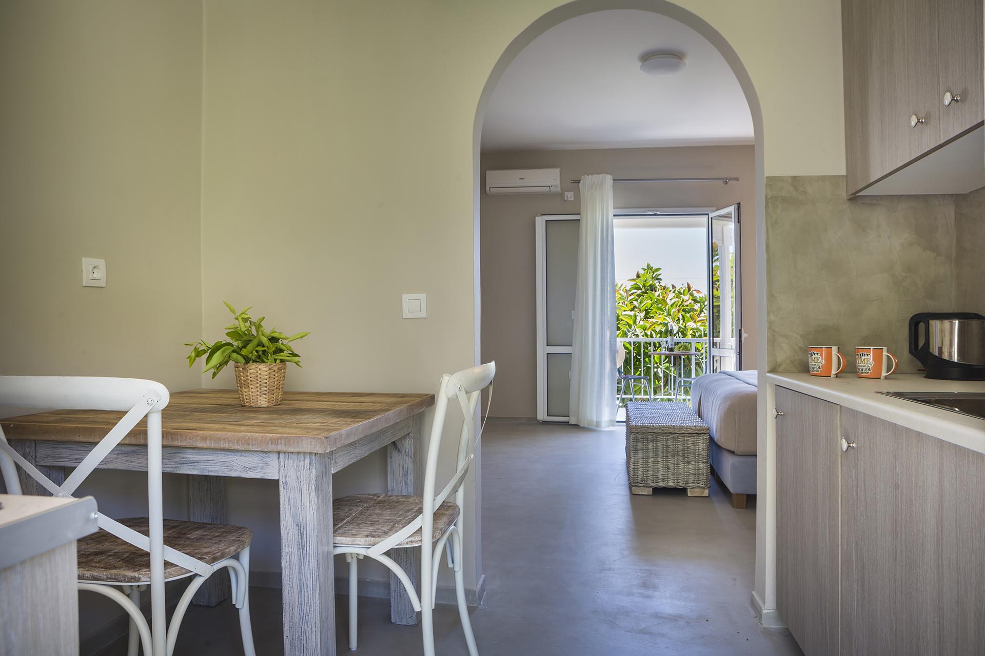 Lourdas Beachfront Studios is a one of a kind property situated just a 1 minute walk from a beautiful beach. The building has 4 studios set over 2 floors 1 & 2 are ground floor and 3 & 4 are 1st floor, each studio has a large double bed, modern tiled bathroom, kitchenette and balcony there is also a safe and complimentary WiFi.