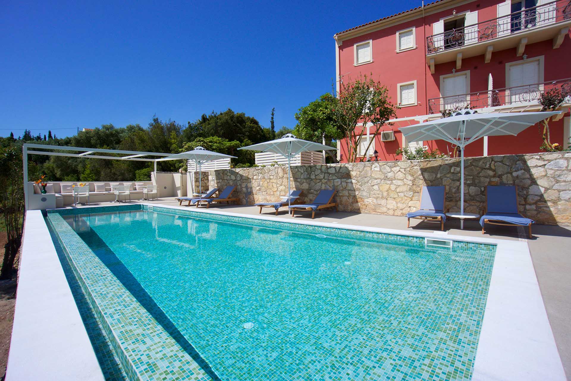 These 2 bed apartments are great for small families, with a large pool and gym. Walking distance to a great taverna and fantastic beach and Fiscardo a 2 minute drive down the hill.