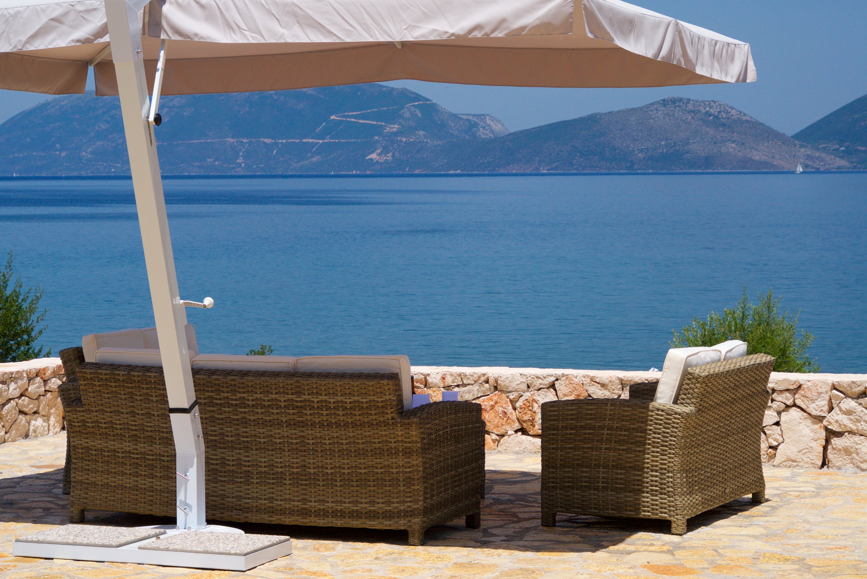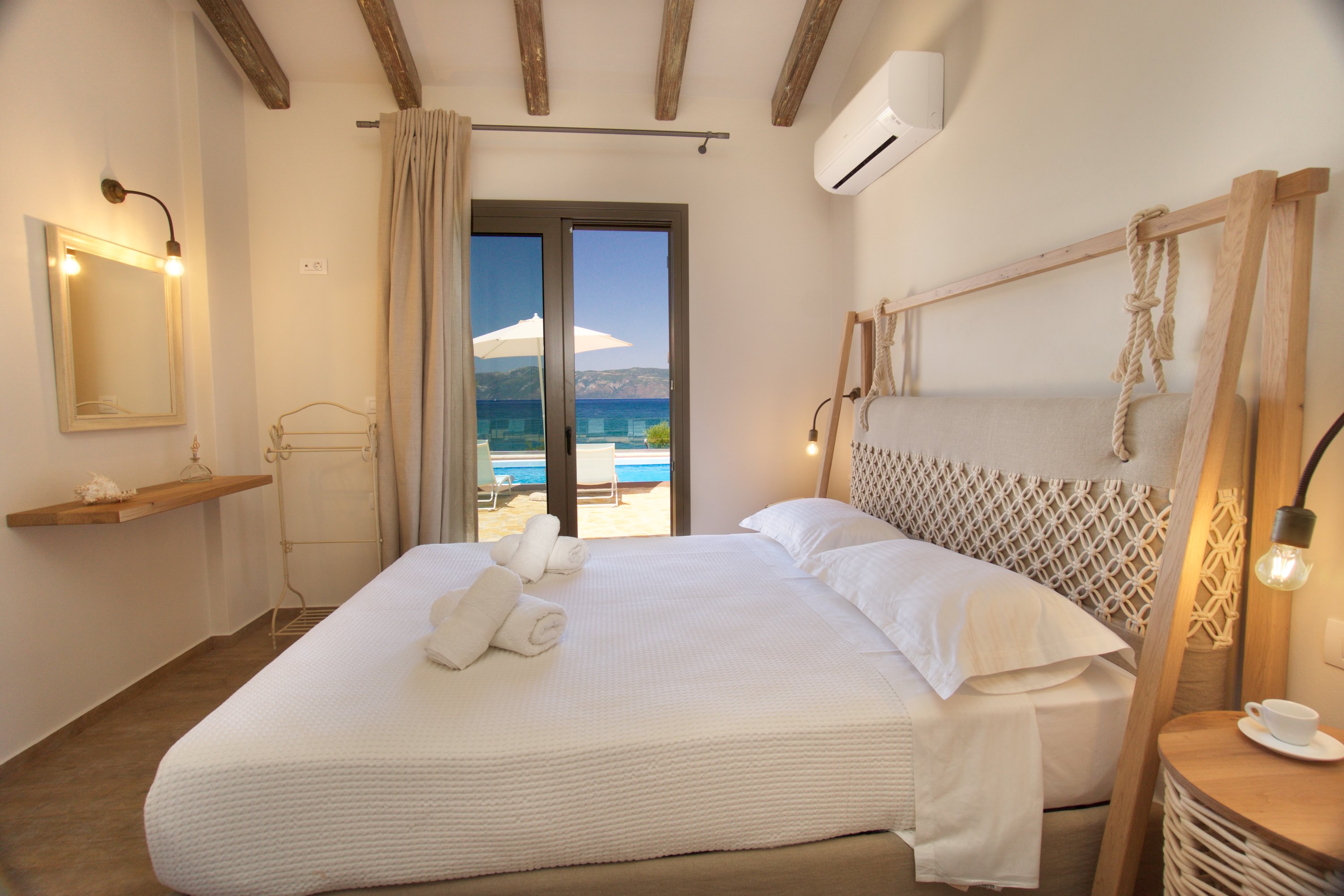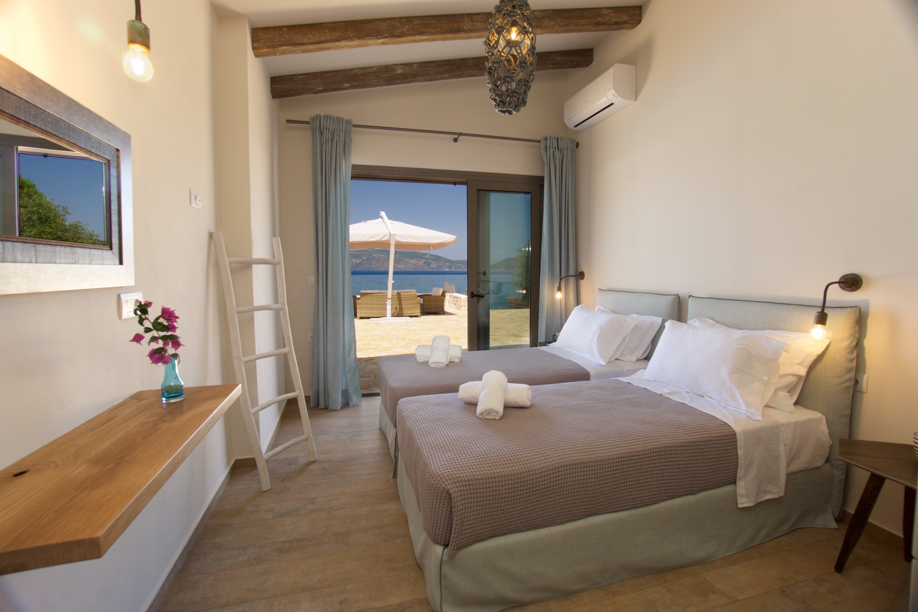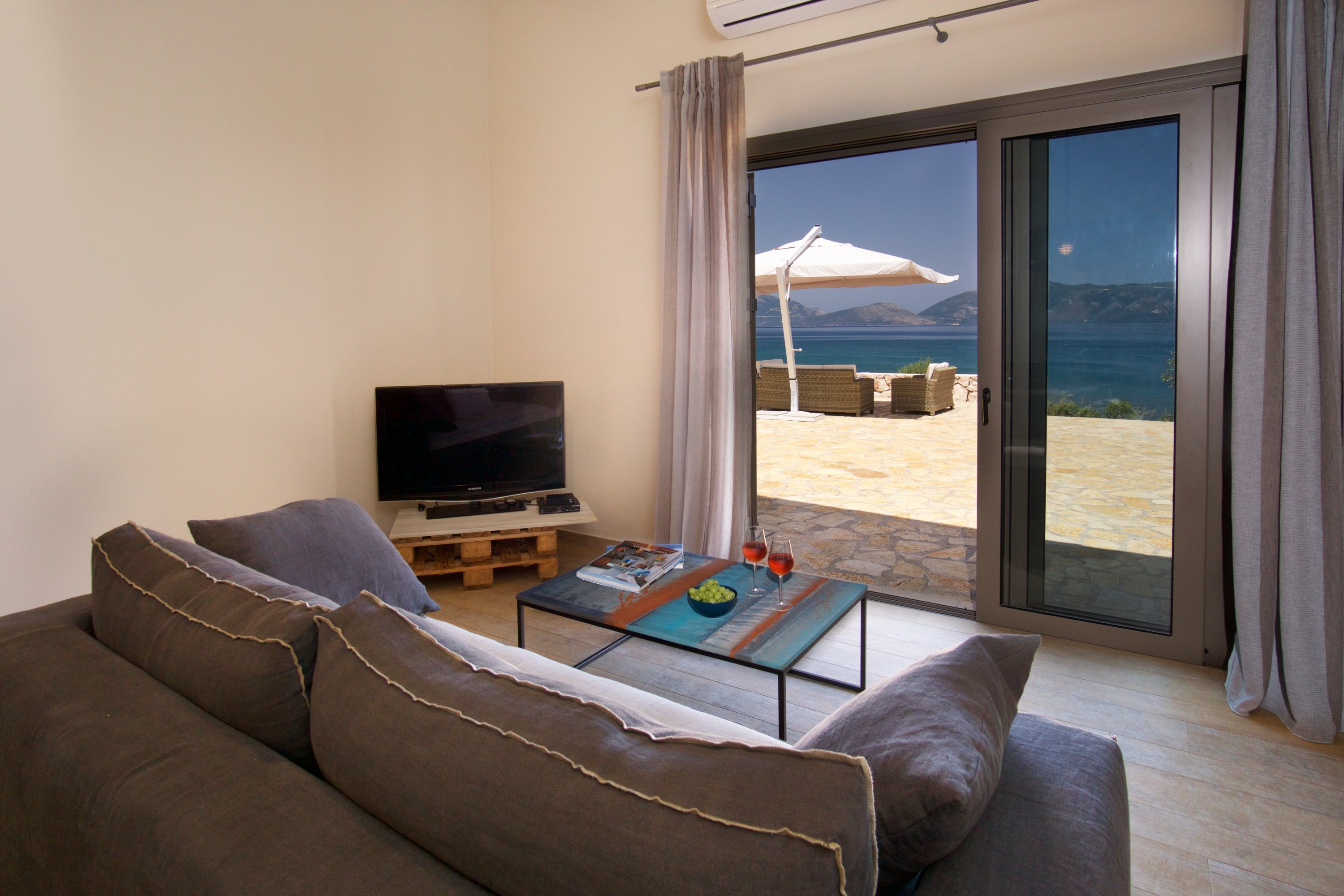 The views to Ithaca, the birthplace of Odysseus are truly magnificent and the garden backs straight onto the beach with a small gravel path leading directly to the sea a real luxury not often found. Karovomilos is a smart little town with a selection of tavernas shops and bars, a short distance along the coast is the pretty harbour of Agia Efimia and in the opposite direction is the bustling port of Sami both Just a short 5 minute drive away.