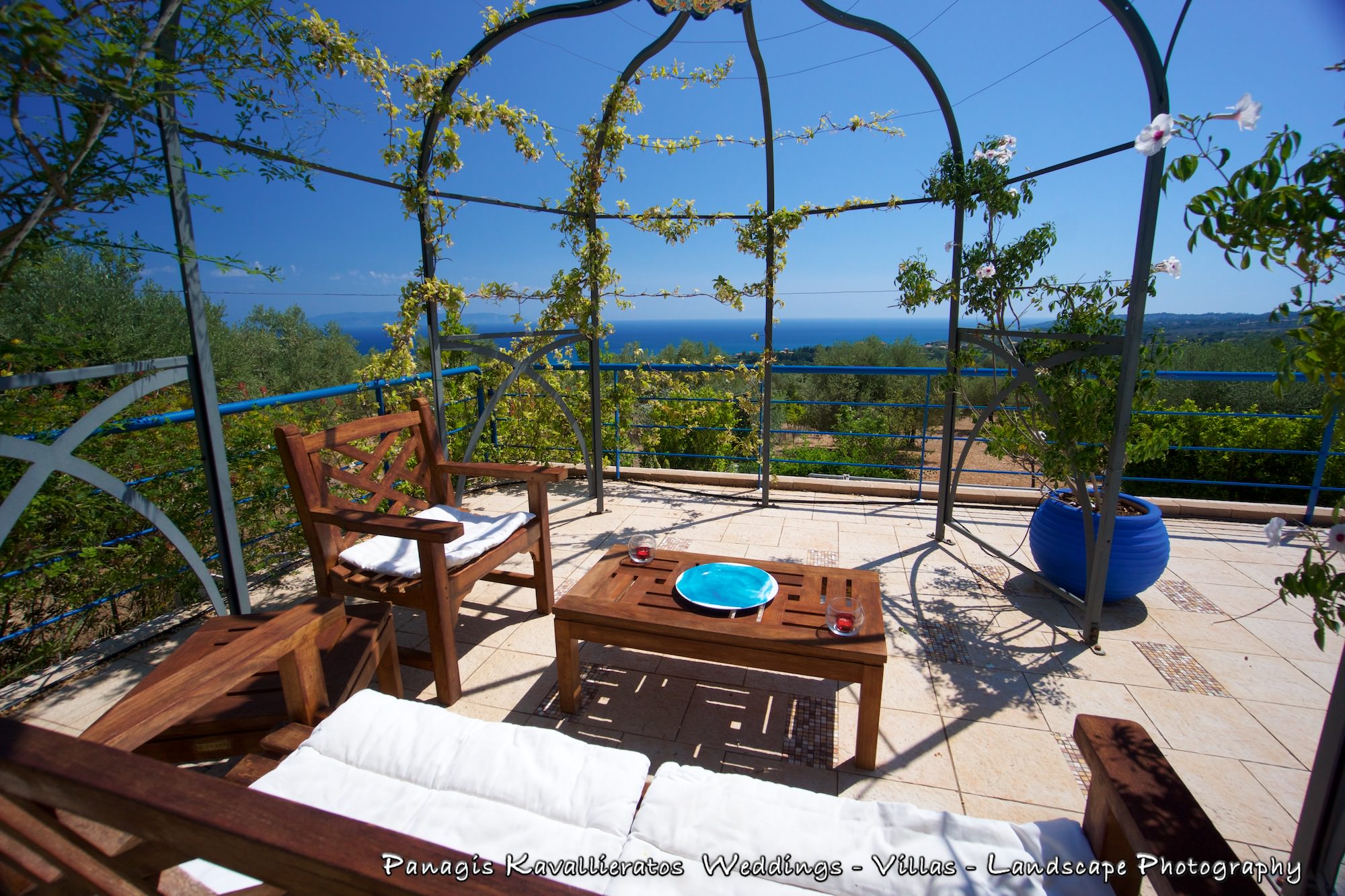 Positioned 800 meters from the beach with direct sea views , the imposing Aenos mountain with altitude of 1826 meters, the villages of upper Livatho, Monastery Sission , the endless blue of the Ionian sea the island of Zakynthos , and the Venetian Castle of St. George.