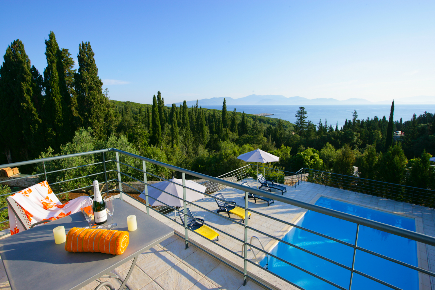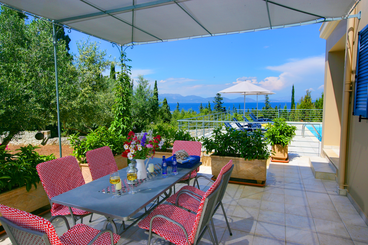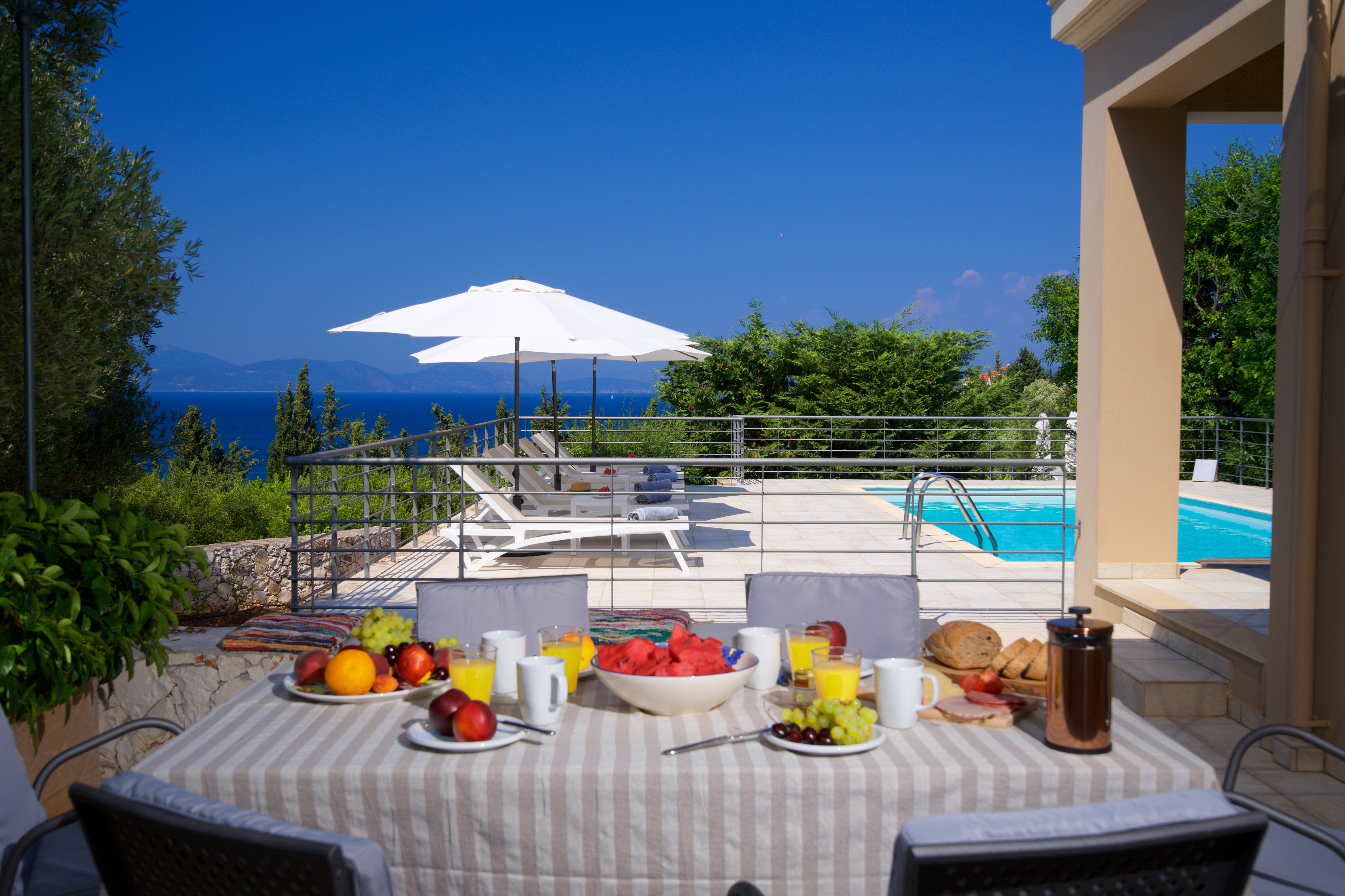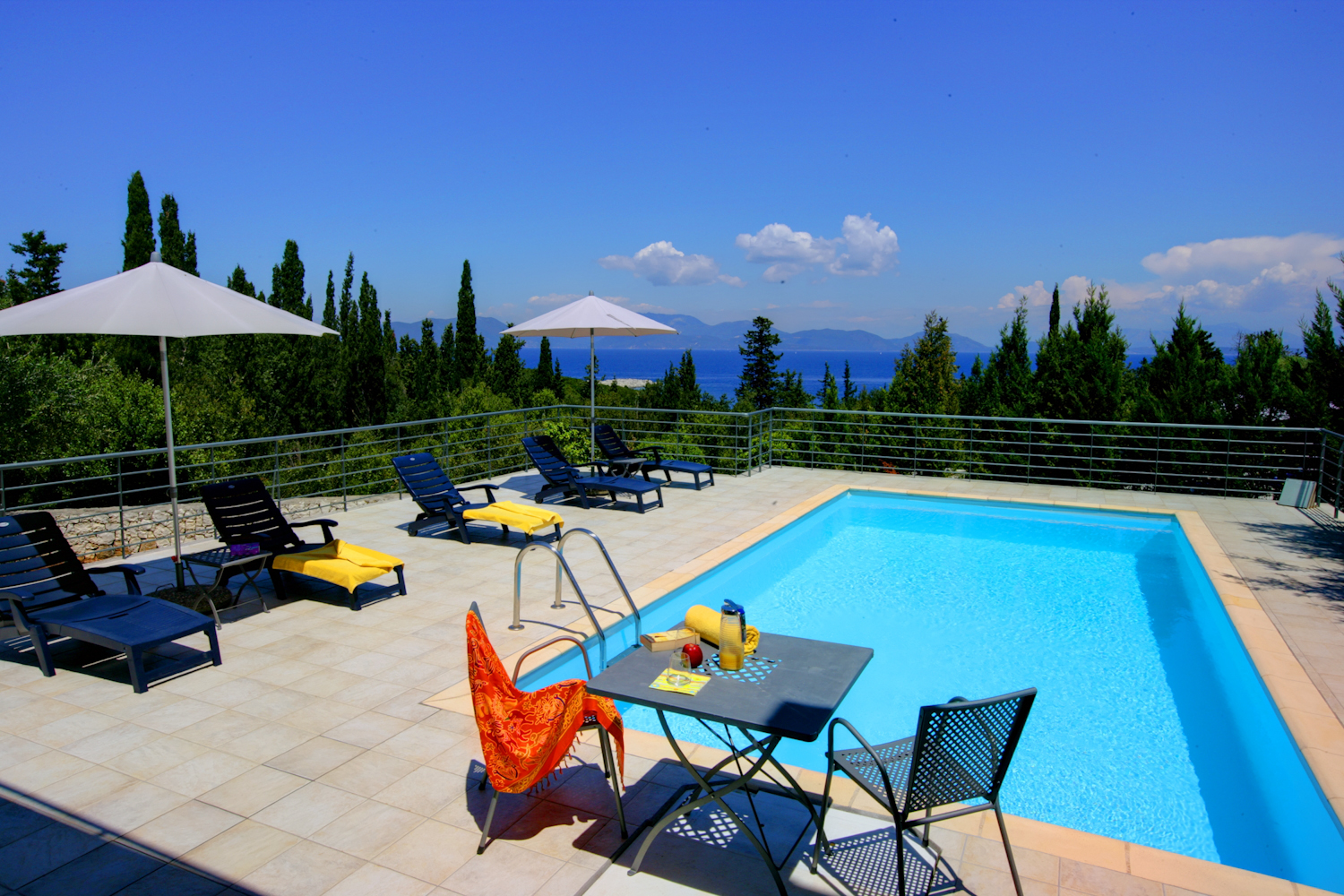 A well appointed 3 bedroom 3 bathroom villa, the 2 main rooms both with king size beds,- one of which can be converted to an additional twin room, both have modern en suite shower rooms, the third bedroom is a twin room also with a modern en suite shower room. All bedrooms are air conditioned. The property has a large private pool and outstanding views over the Ionian sea. .Within easy walking distance of restaurants and bars in the harbour of Fiscardo this villa is perfectly situated for those guests that want to give up the car for a few days.