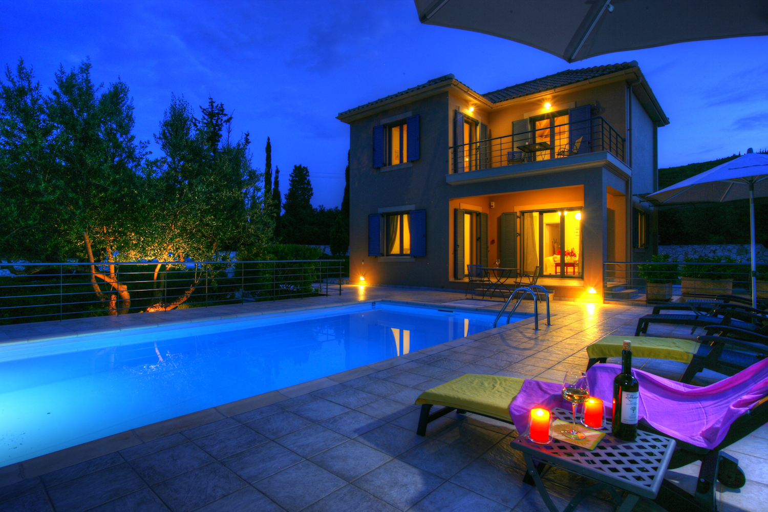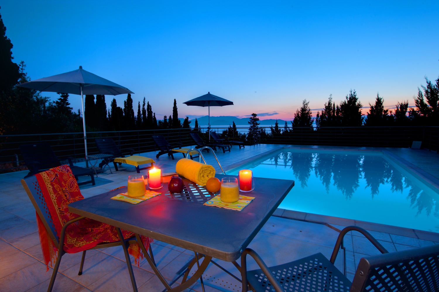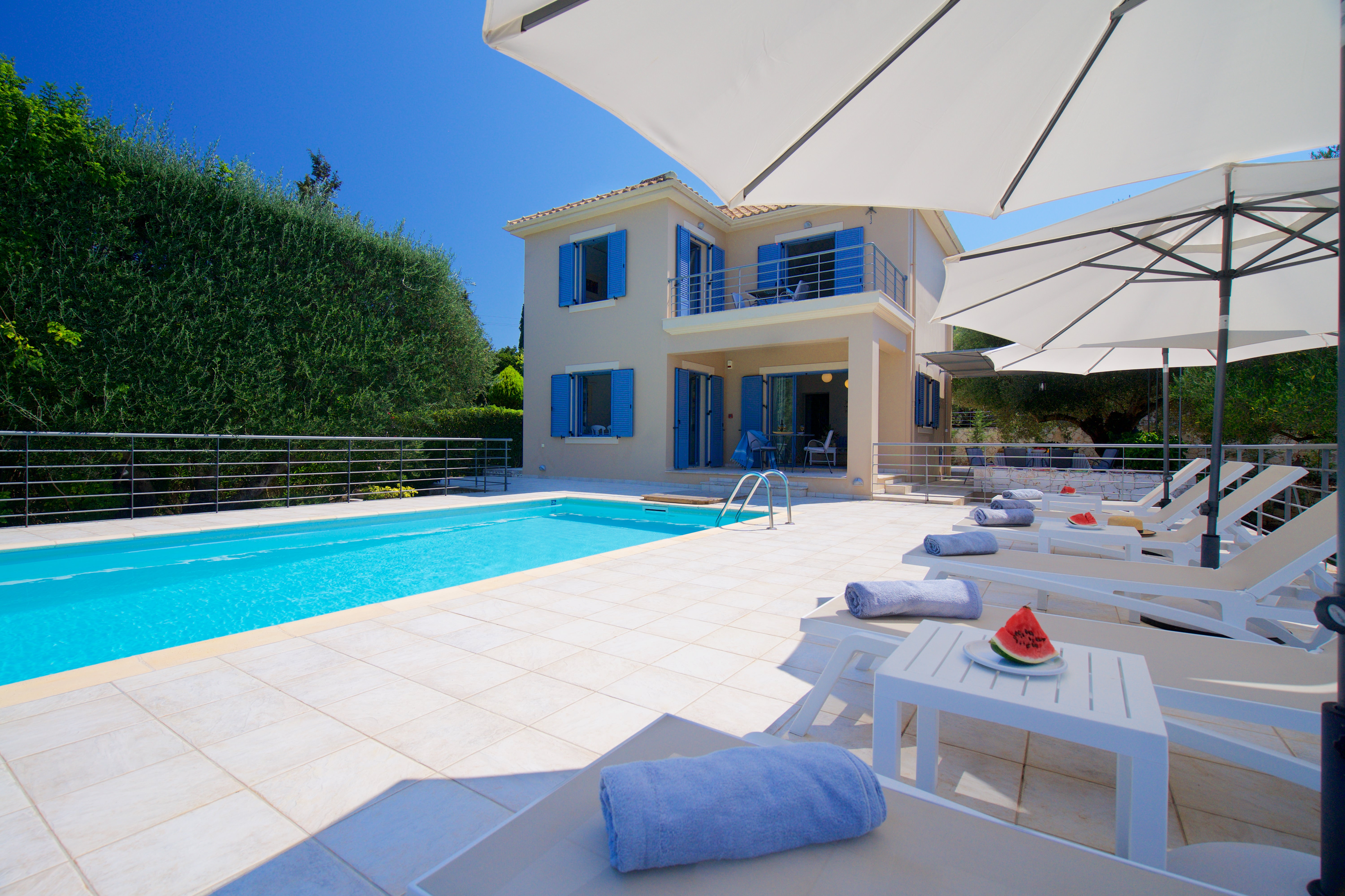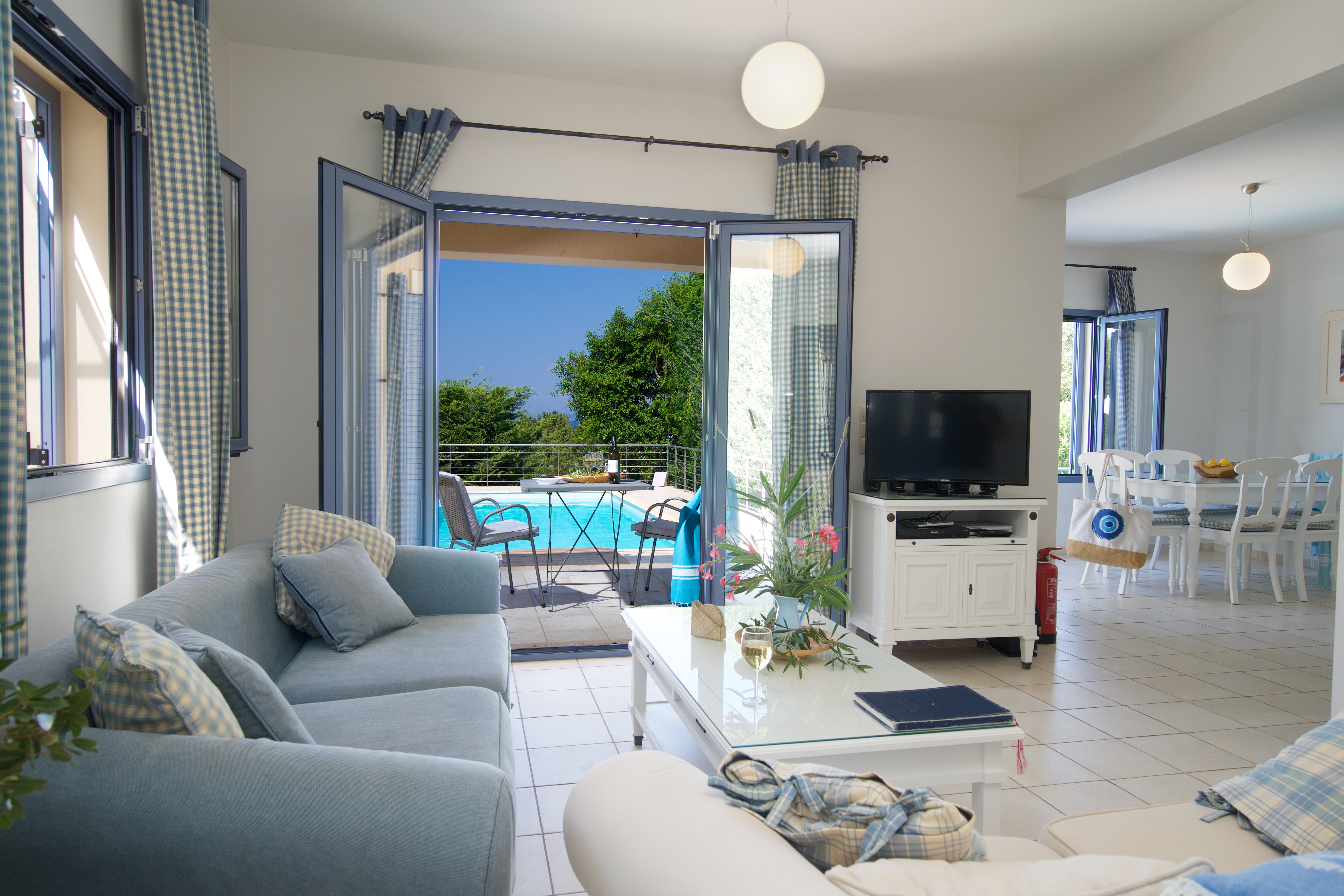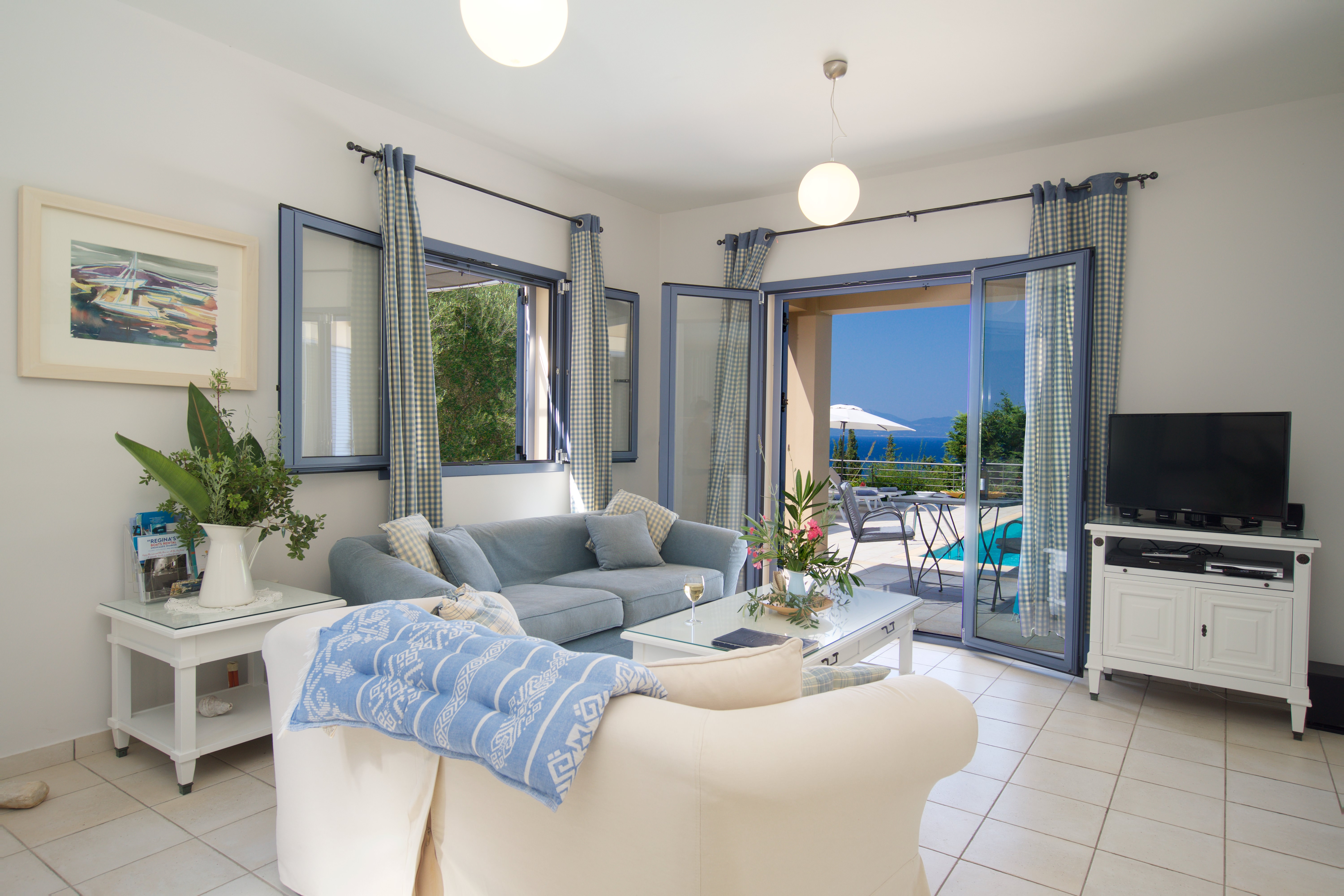 A well appointed 3 bedroom 3 bathroom villa, the 2 main rooms both with king size beds,- one of which can be converted to an additional twin room, both have modern en suite shower rooms, the third bedroom is a twin room also with a modern en suite shower room. All bedrooms are air conditioned. The property has a large private pool and outstanding views over the Ionian sea. .Within easy walking distance of restaurants and bars in the harbour of Fiscardo this villa is perfectly situated for those guests that want to give up the car for a few days.