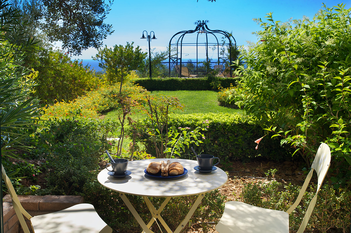 Apartment # 1 has direct access to the garden and pool area through large french doors leading onto a shady terrace